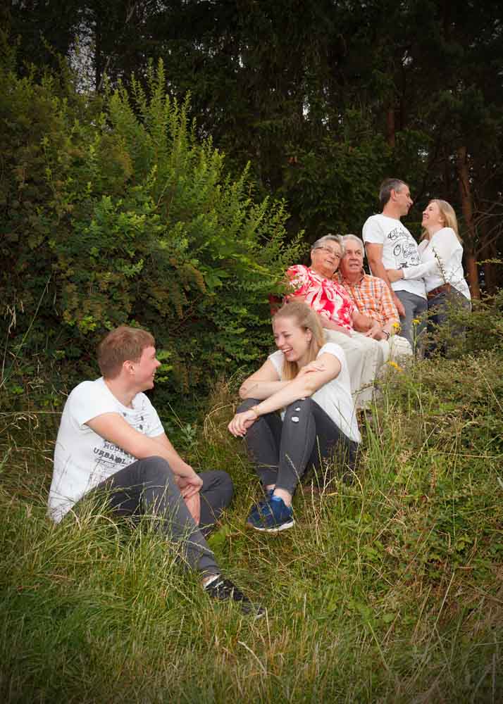 Wir freuen uns auf Ihre kleine oder große Familie. Bringen Sie Ihre Liebsten mit: Mama, Papa, Kinder, Geschwister, Oma, Opa, Tante, Onkel - natürlich darf auch Ihr Vierbeiner mit auf das Familienbild! Mit viel Spaß und Witz entstehen bei uns viele natürliche Familienfotos, die wir Ihnen auch gern in einem individuellen Familienalbum zusammenstellen.